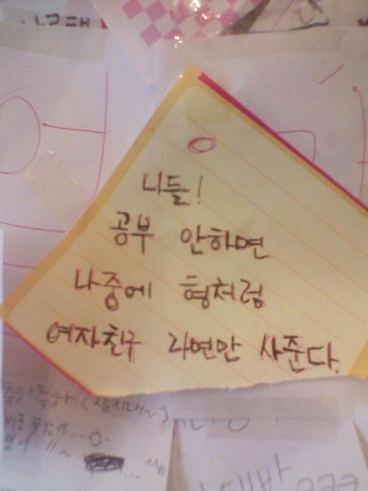 이제 공부해야지~ ~ 라면집에 써있는 종이 쪼가리 보고...반성하자.~ ~~ 학생은..잠을.자야되~ ~ ~ 이젠 밤새지말고