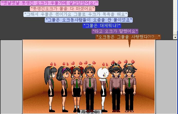조그만한 황토방에 옹기종기 모여앉아 한 두세시간 가량 장르를 선택하고 거기에 맞게...(?) 즉석소설릴레이를 했었당.