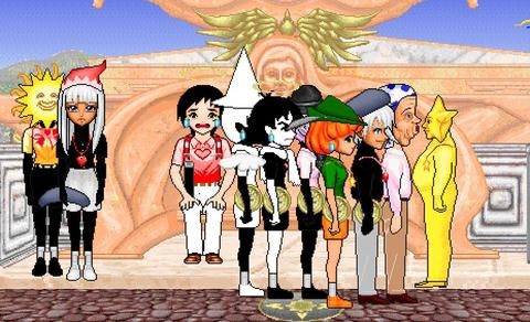 별신님에게 미래의 답을 구하고자 제물을 들고 줄지어 있는 율시민들